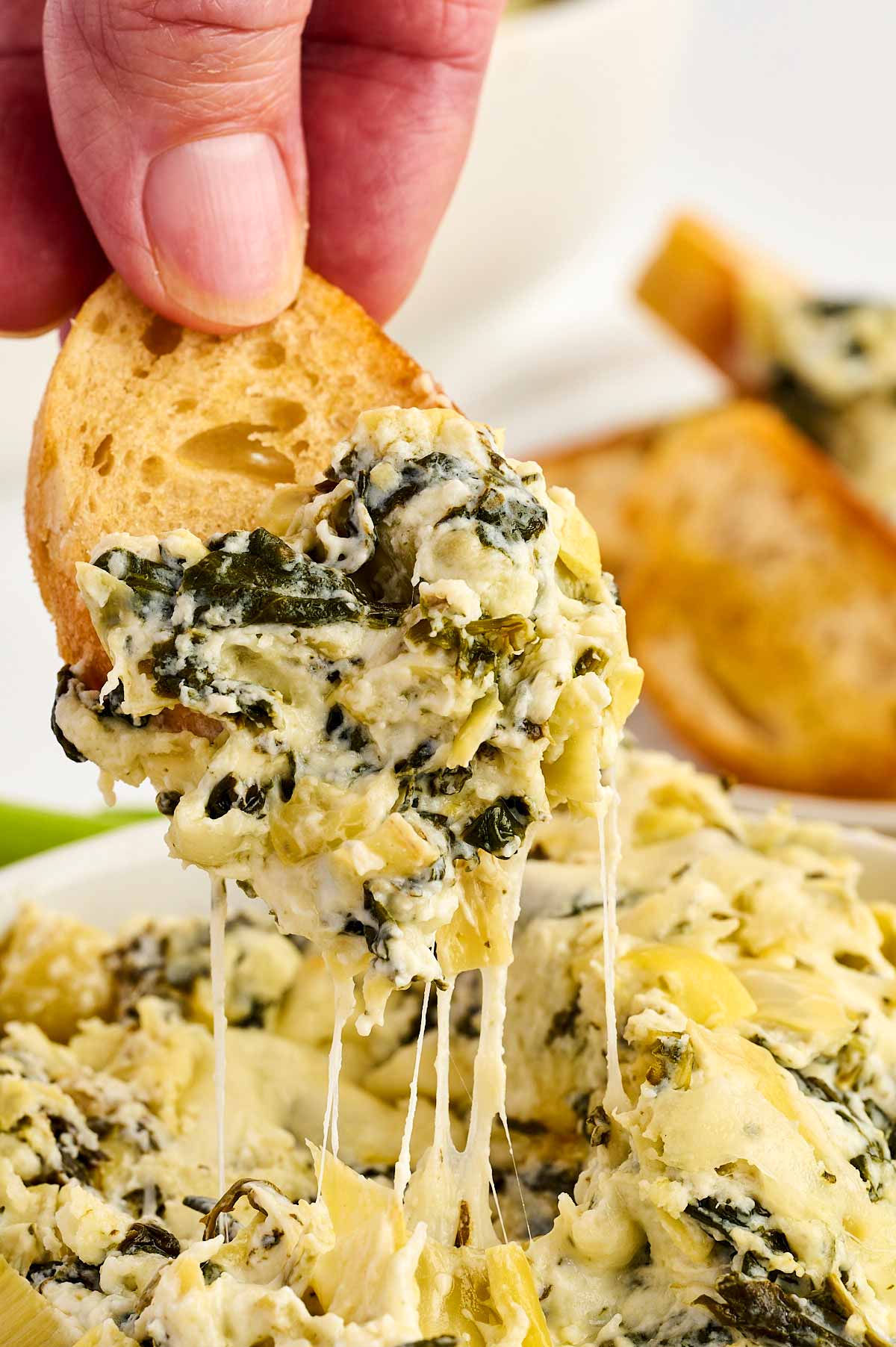 You need a “heavy lifter” for this dip because it’s thick and cheesy. Thin, flimsy potato chips will snap off and get lost in the bowl. Go with thick-cut tortilla chips, toasted baguette slices (crostini), or even those sturdy pita chips.