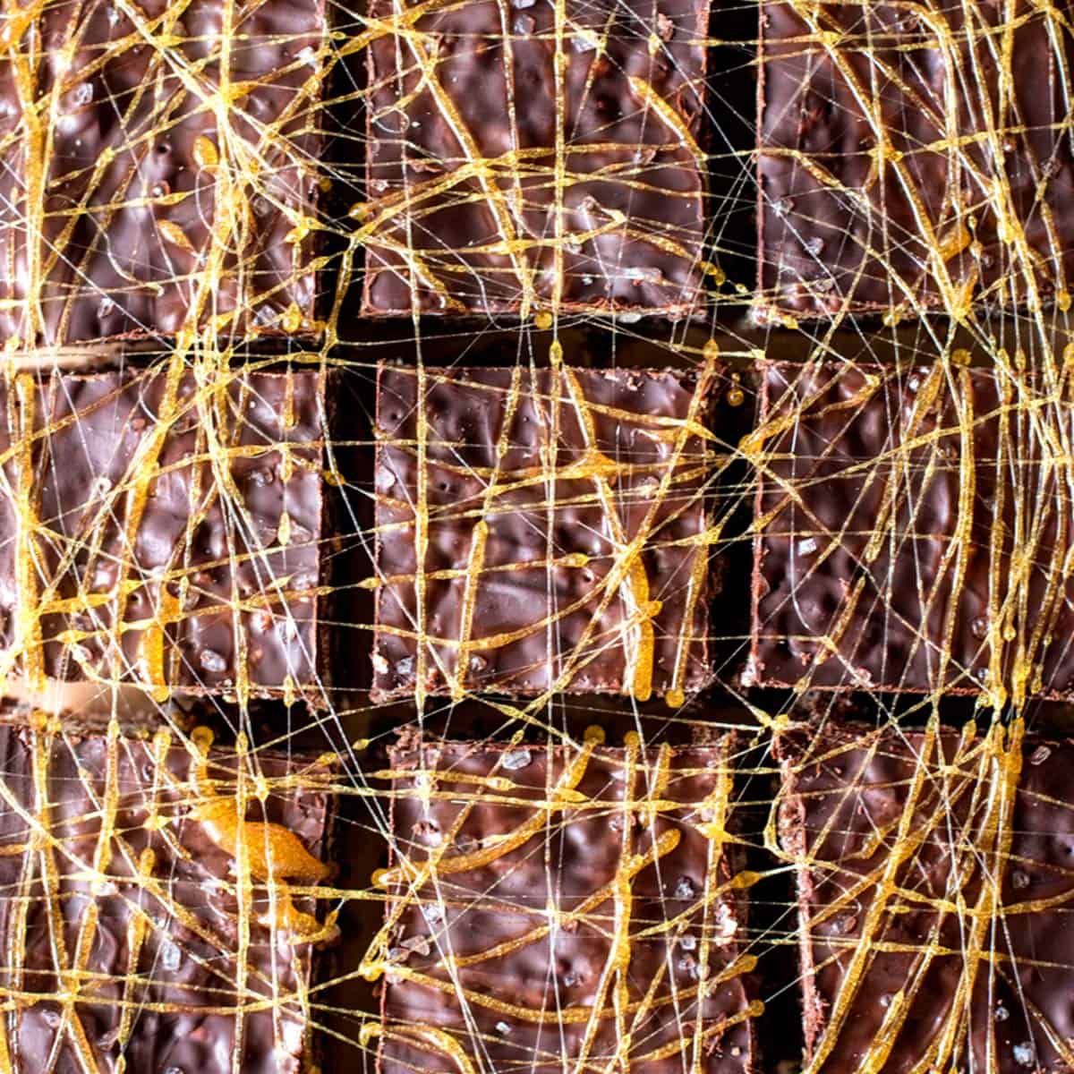 Salted Dark Chocolate Caramel Rice Krispie Treats