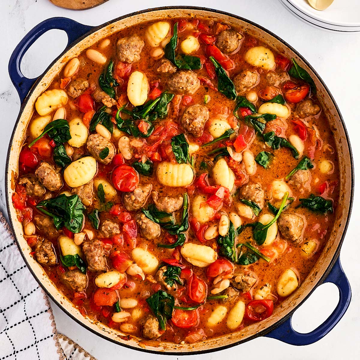 One Pot Tuscan White Bean and Sausage Gnocchi