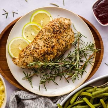 Turkey: I used half of a boneless, skinless turkey breast. You can also use skin-on. If using bone-in turkey breast, I absolutely recommend cooking it with a sous vide thermometer inserted to make sure it’s safe to eat all the way to the bone. Seasoning:- if you don’t have celery salt, just use additional regular salt