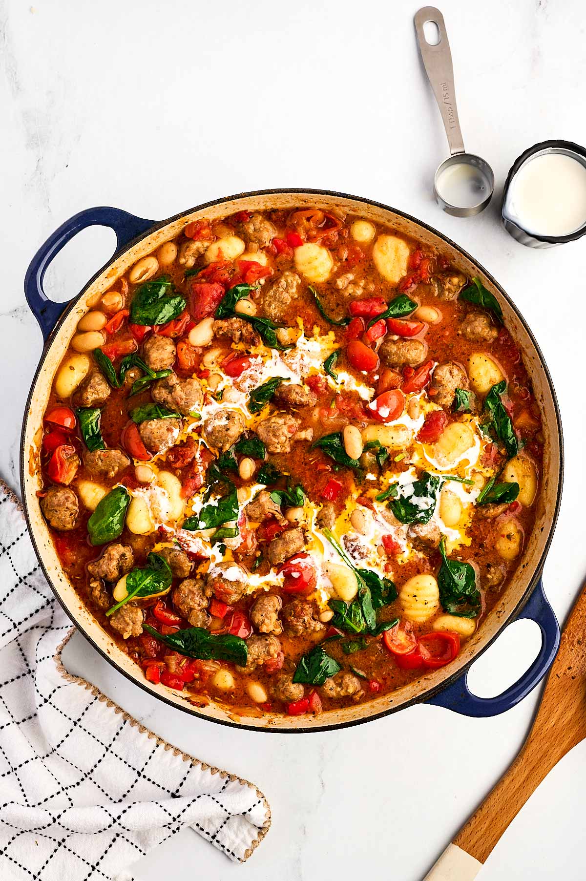 One Pot Tuscan White Bean and Sausage Gnocchi